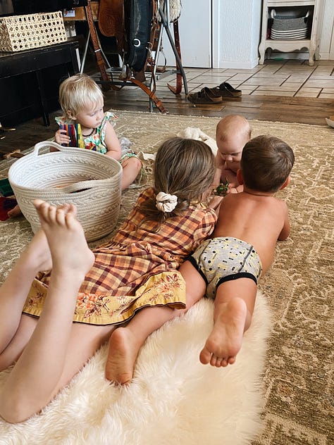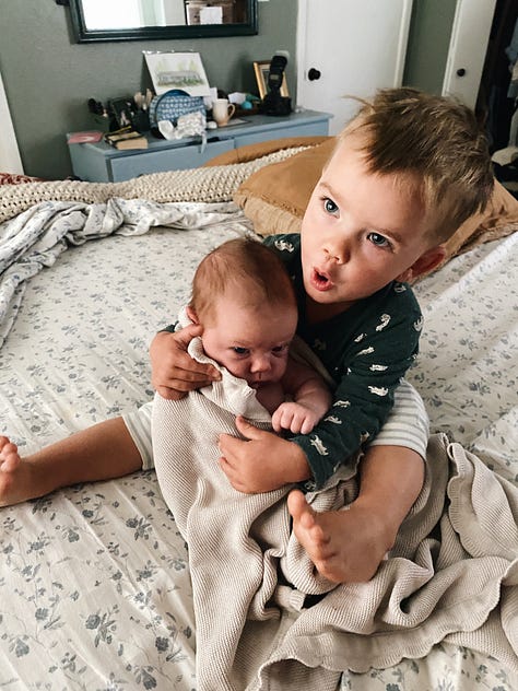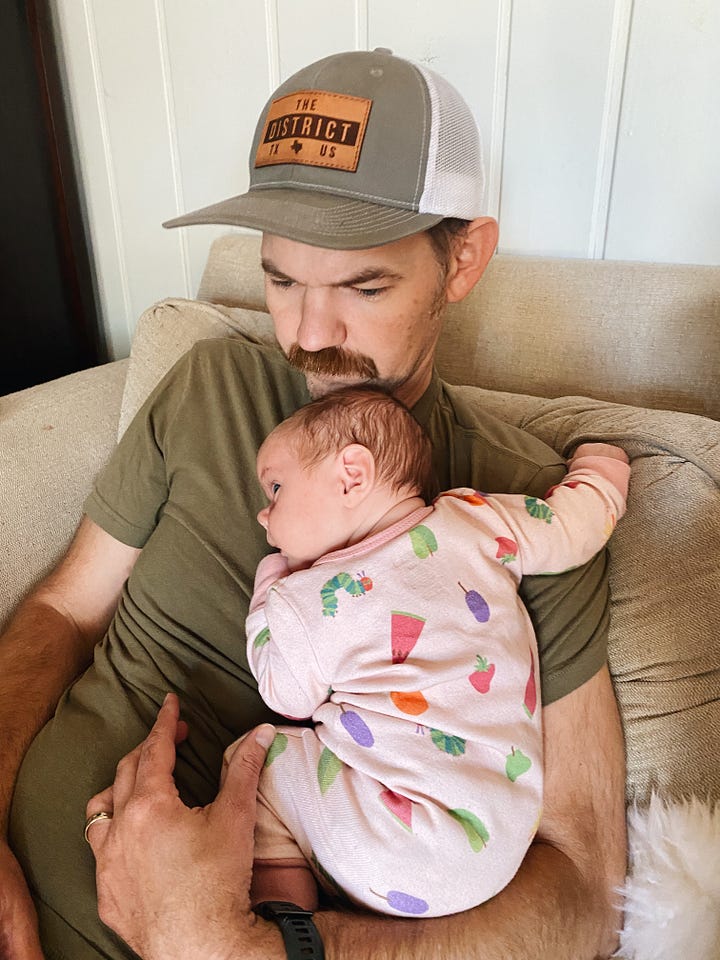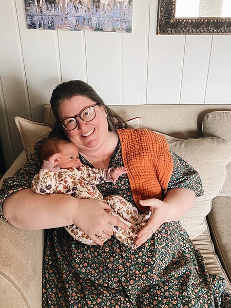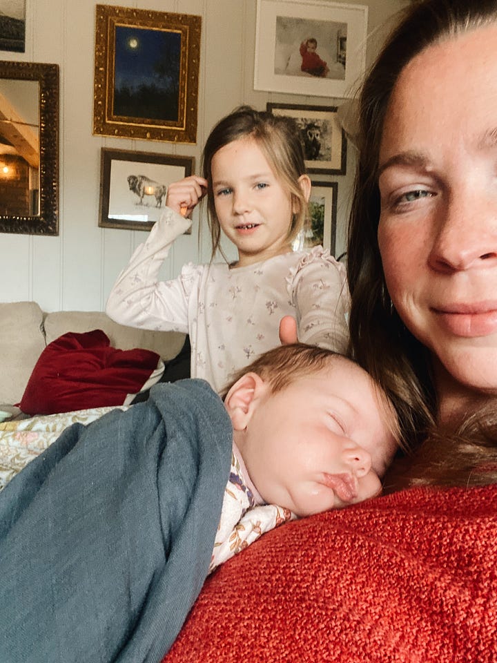 It’s strange with the fifth child. There are times I’m going about chores or routines and am thinking about the 20 open tabs in my brain, when I become aware, “I’m holding a baby. Is it a boy or a girl? What’s the name name?” And I actually have to take a moment and remember. It feels so much like having Phin (and she looks like Phin in some ways) that I can barely believes she’s a whole separate baby. Sort of feels like it’s just an extension of Phin. She is the most happy bonus baby surprise and I’ve told JB so many times, “I cannot believe she’s really here. That we have five children.” I’ve enjoyed our last couple of babies so much. Probably because JB and I both are more relaxed. There was a lot I was adjusting to in life with our first 3, and if I could I’d go back and give myself a chill pill. (But I should probably just do that now ;-) )