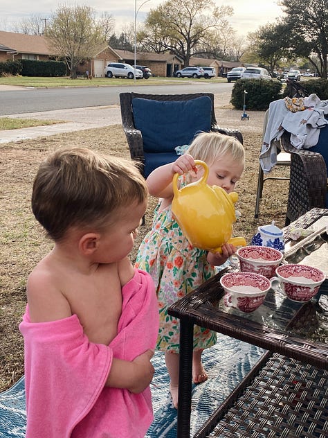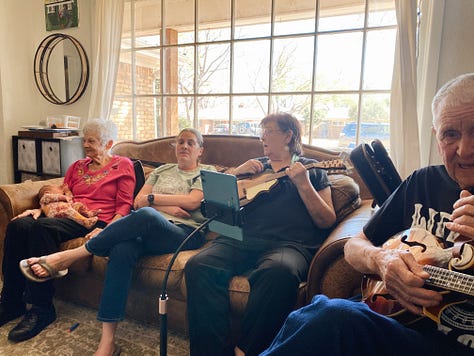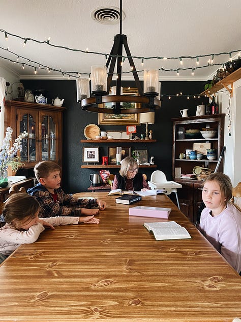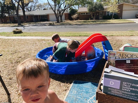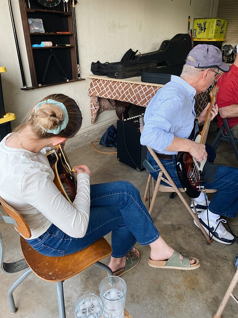 One more thing to love about Lubbock is its surprising network of whatever it is you’re looking for. I feel like there are so many creative people here, just doing their thing. You only need to reach out a little and most likely you’ll stumble into what you were looking for. I’ve wanted to go to some picking and grinning sessions as I have a soft spot for bluegrass. In the days of my youth I attended a few festivals in Blue Ridge Mountains. It was at one of those festivals that a man gave me my first mandolin. I think once bluegrass gets in your blood, there’s always going to be an itch to listen to and to take part in it. Live music stirs a person in a way not many things can. So I asked brother Elton Bass to come play for us a couple of weeks ago, and did. While here, he told me about the garage jamming sessions that a homeschool family in Lubbock hosts on Tuesday nights. Last week I took Bella, our mandolins in tow. It ended up the family (also with 5 children) lived just a few blocks from us. (Again - Lubbock surprises me in the best ways). The garage with alive with music when we pulled up, guitars, bass, fiddle, mandolin, auto harp and several banjos. These were mostly old timers, fellows with a sense of humor and the ease of playing a wide selection without a second thought. Of course, it’s Lubbock, so you walk in, and everyone treats you like they’ve known you for ages. Without you knowing their names they’re already teasing and giving a hard time. A few men helped us with chords and one of the girls from the family held Lottie while I played. (And by play, I mean “painstakingly plucked a few notes and tried to make sense of where to find myself in the music on the instrument). Arabella and I made a list of songs they played that we wanted to revisit and practice along to. As I sat there on the edge of the circle my fingers fumbled across strings, but my heart was brimming. We do live in a good world and it does get better than this in the end.