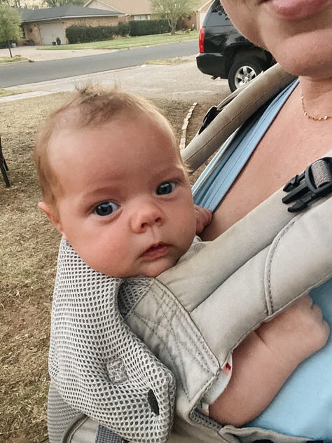 And the entry above is a case in point: Saturday I began typing that we’re in that phase of having a baby where you get to things in tiny amounts before needing to switch gears. I’m now able to keep house and do school and what not, but figuring out how to do it with a little papoose is a learning curve. It’s almost like the first time doing it because if you were to ask “how did you do what you need to when the others were this small” I’d tell you: I don’t remember. I do know that somehow, you get done what you absolutely have to. Everything else is a cherry on top for now. And I also know that somehow I managed to carry Lottie in a Target bathroom, use the bathroom and pull up, zip and button my jeans with one hand. I still don’t know how that happened.