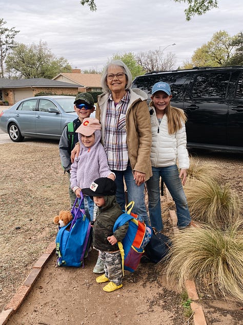 My sweet Mother In law coming and taking children to her house for Friday night park-and-a-movie.